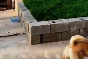 主不想让狗狗出去乱跑,就发明了“有轨电狗”的栓狗方式