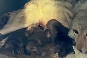 野生母狼怀孕待产来到动物保护站,工作人员秒变“月嫂”全程守护