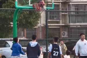 篮球被卡在篮筐,同学用球压,没想到越压越多,事件性质逐渐改变